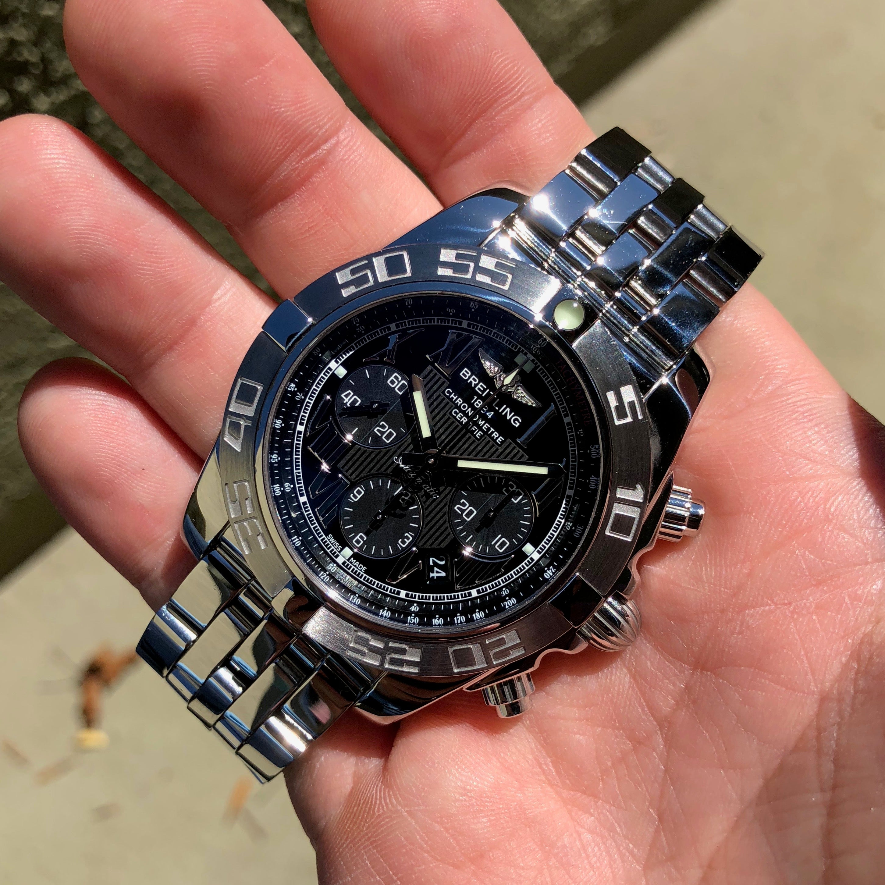 Weltweit vergleichen traumuhr finden sicher kaufen breitling chronomat 44 box swiss papers 2010 mop dial diamonds. Breitling steel 435mm automatic ab01109e pre owned canada montreal. This is the first watch from breitling to use their landmark b01 in house movement the first movement designed and.