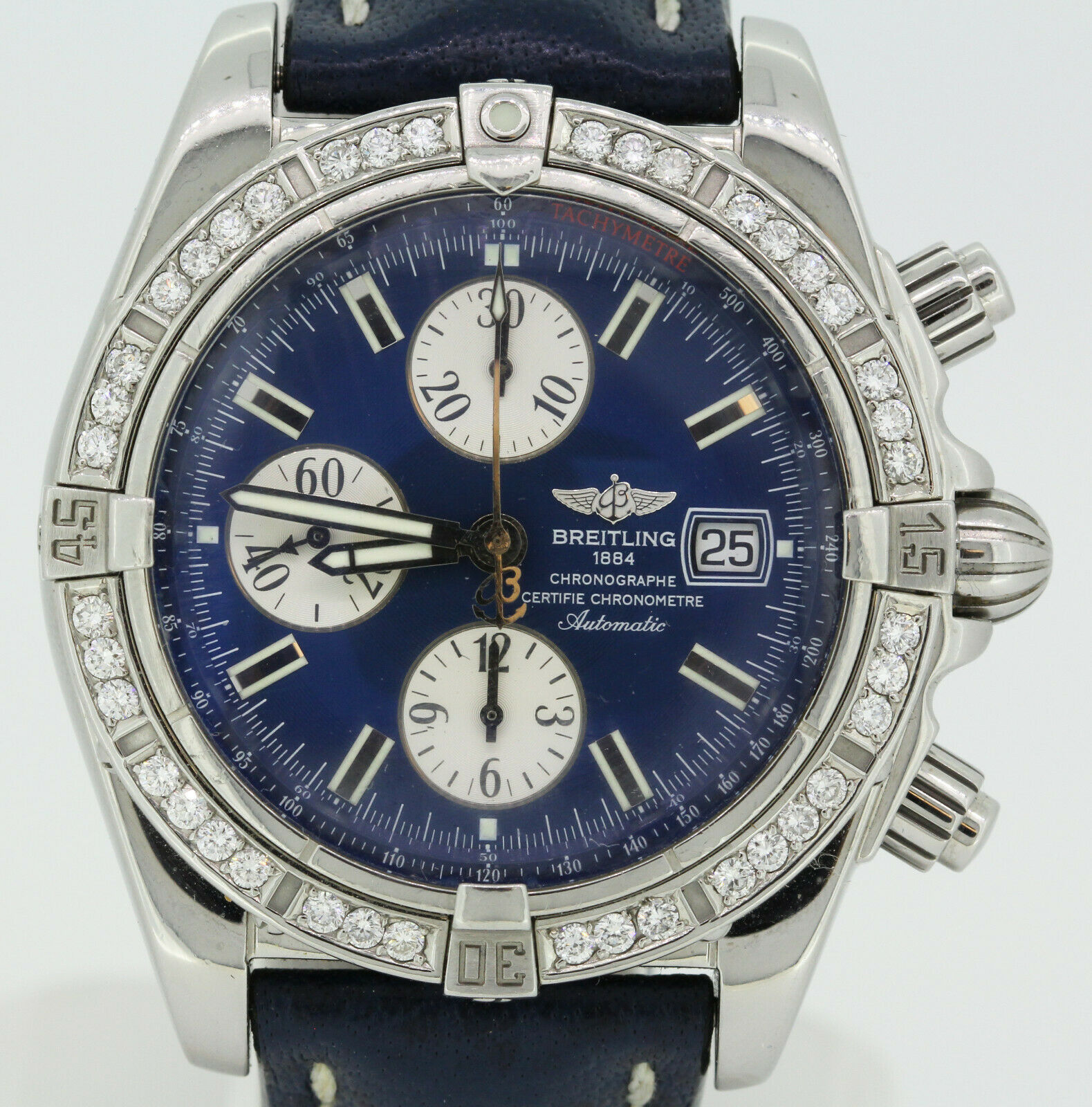 Breitling Chronomat Evolution A13356 Ss Blue Dial Genuine Diamond