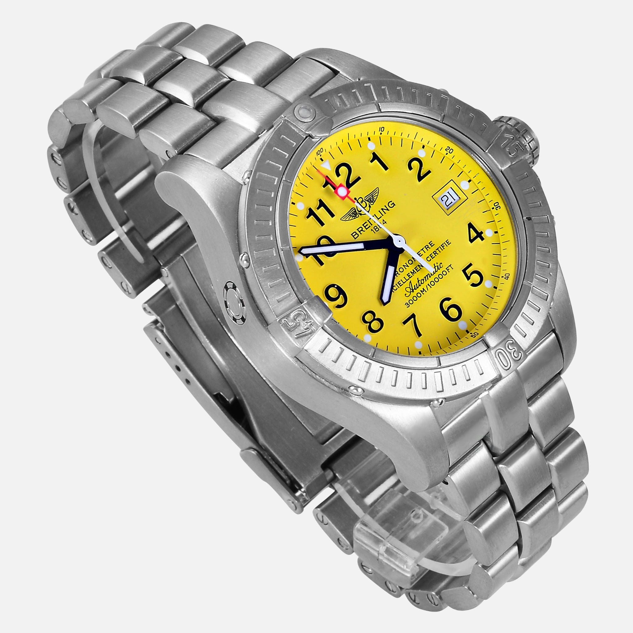 Discover the breitling avenger ii seawolf in a combination of steel cobra yellow and steel satin finish steel 14435. Avenger automatic 45 seawolf steel yellow bold extremely robust and shock resistant the avenger automatic 45 seawolf is a pilots watch prepared for adventures well below the oceans surface up to 300 bars 3000m. Find out more online.