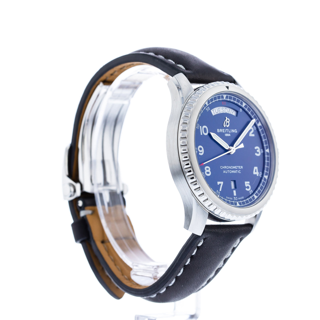 As the name suggests this watch is also a chronograph but comes with a few key differences as opposed to the previously discussed 7750 based variant. Breitling aviator 8 automatic day date a45330101c1a1 best online discount free overnight shipping no sales tax outside ca a4533010ca10187a a45330101c1a1 new breitling mens aviator 8 automatic day. The breitling aviator 8 day date a45330101b1x1 is encased in 41mm of stainless steel surrounding a black dial on a black leather strap.